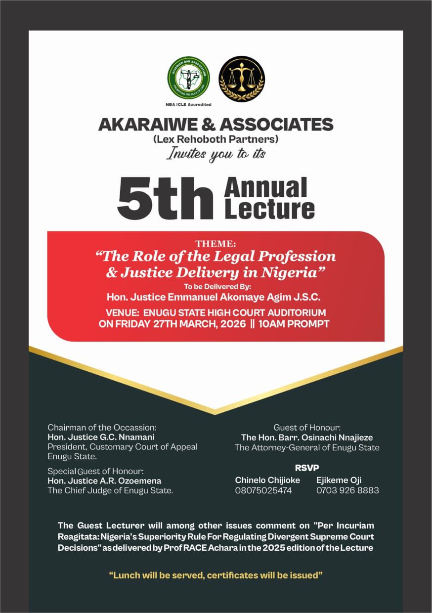 All protocols duly observed. I thank Almighty God for making it possible for all of us to be here for this occasion. I thank Mr Ike Akaraiwe SAN for...